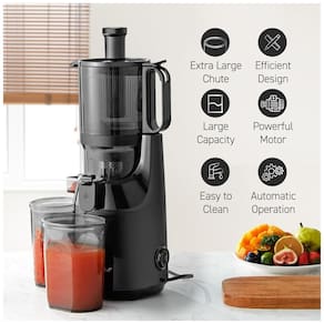 Centrífuga de frutas Elite Gourmet com motor potente de 150W, câmara de alimentos Tritan livre de BPA, design resistente a impactos e fácil de limpar. Possui rampa de alimentação extragrande.Nº de velocidades