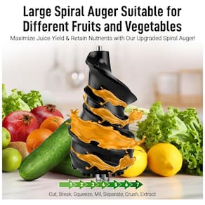 Centrifuga de frutas com motor silencioso de 250W, função reversa, calha de alimentação larga, bicos separados de suco e polpa, sensor de segurança inteligente e coador de sorvete.Nº de velocidades