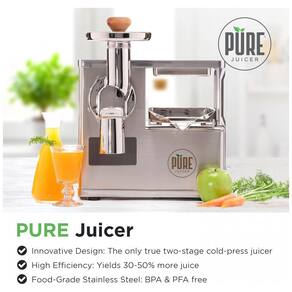 PURE JUICER Nosso espremedor de aço inoxidável usa um processo exclusivo de prensa a frio de dois estágios. Ele moe rapidamente o produto em uma polpa fina e usa uma poderosa prensa hidráulica para extrair cada gota vital de suco. A polpa é ótima para assar, smoothies e muito mais. SAÚDE O espremedor de alta qualidade da PUREs produz sucos e alimentos com nutrientes densos. Nossa máquina de espremedor é versátil e funciona como um excelente processador de alimentos para fazer comida para bebê, leite de noz, molhos, sopas e até sorvete vegano. Comida saudável e deliciosa para sua família. FÁCIL DE USAR E LIMPAR Comece a suar assim que desembalar o seu espremedor Pure. Intuitiva de operar, esta máquina robusta não requer ferramentas para instalação. Todas as peças de aço inoxidável são facilmente removidas para limpeza e são protegidas para máquinas de lavar louça. SAIBA A DIFERENÇA O processo de duas etapas captura os nutrientes de cada fruta e vegetal, dando a você o sabor total. Pode moer através de cascas e até cascas de melancia fazendo suco incrível. A impressora usa 2,5 toneladas de pressão para obter 30 a 50 mais suco do que outros espremedor. QUALIDADE Projetado com sua saúde em mente, o PURE Juicer usa um design de aço inoxidável e foi projetado para resistir ao teste do tempo Marca: Não Informado