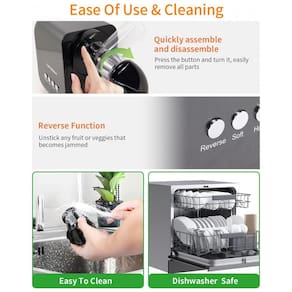 Versatilidade de suco Comparado com a limitação dos espremedor manuais no tipo e quantidade de suco que eles podem produzir, os espremedor multifuncional podem fazer mais, economizar tempo e aborrecimentos. O Modo Macio extrai facilmente suco de tomate, melancia, laranja, uva, pepino e muito mais. O Hard Mode lida facilmente com aipo, capim trigo, maçã, romã, pêra, cenoura, beterraba, gengibre, couve e muito mais. A calha do alimentador pequeno e o design de 0 lâmina impedem que as crianças sejam feridas durante o suco