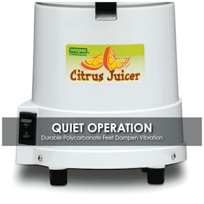 Centrífuga de frutas profissional Waring JC4000, motor silencioso, proteção contra respingos, ideal para grandes volumes de suco, componentes laváveis.