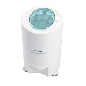 Centrífuga de Roupas Mueller Dry com capacidade de 8,8kg (roupa molhada) ou 2,9kg (roupa seca), eficiência energética A, cesto interno de plástico e dupla tampa com abertura superior.Programas
