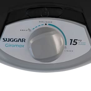 Centrífuga de roupas Suggar Giromax com capacidade de 15kg, timer de 7 minutos, desligamento automático, trava de segurança e porta fio integrado.Programas