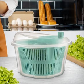 Centrífuga Seca Salada Arthi - 4,5 L, Higiênica e Multiuso A Centrífuga Seca Salada da Arthi (Ref. 5022) é uma ferramenta indispensável para quem busca uma alimentação mais saudável e prática. Ela remove o excesso de água das folhas e alimentos rapidamente, garantindo que a salada fique crocante e fresca por muito mais tempo. Características Físicas e Funcionais: Capacidade Ideal: Possui 4,5 litros, um tamanho excelente para preparar porções médias e grandes de salada para a família. Preserva Alimentos: Ao secar as folhas completamente, o produto ajuda a preservar a salada por muito mais tempo, inibindo a deterioração precoce causada pela umidade. Fácil de Usar: Seu mecanismo de centrifugação é prático, higiênico e fácil de usar, tornando a tarefa de secar folhas e vegetais rápida e eficiente. Uso Multiuso: Embora seja ideal para saladas e verduras, é também indicado para secar outros alimentos como legumes, frutas, carnes e peixes após a lavagem. Marca: Arthi (Ref. 5022). Especificações Técnicas: Funcionalidade: Centrífuga para secar saladas e outros alimentos. Cor: Branco. material: plástico Capacidade: 4,5litros. Dimensões: Diâmetro Ø24,2 X Altura 17,6cm.