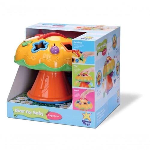 Descrição: O Diver for Baby Cogumelo é um brinquedo educativo que auxilia no desenvolvimento da coordenação motora e no reconhecimento de cores e formas. Para brincar basta pressionar o cogumelo para baixo, as portas se abrem, apresentando ao bebê a reação causa e efeito. Um brinquedo lúdico que une diversão e aprendizado.