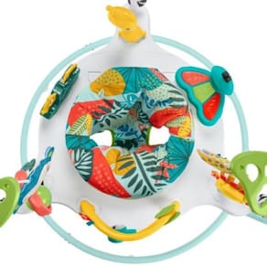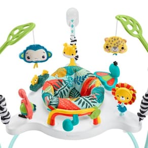 Com o Centro de Atividades Fisher-Price Cadeirinha pula-pula Jumperoo - Diversão na Selva, seu bebê pode pular rumo a aventuras sensoriais animais! Cada salto ativa luzes, músicas e sons divertidos, incentivando seu bebê a continuar pulando e fortalecendo sua coordenação motora grossa. O pula-pula independente tem assento giratório e atividades interativas para que seu bebê possa explorar, além de três ajustes de altura que acompanham o crescimento. Peso máximo 11,3 kg. Use apenas com uma criança que é capaz de sentar e se sustentar sem ajuda e que não consegue andar ou escalar o produto. ??