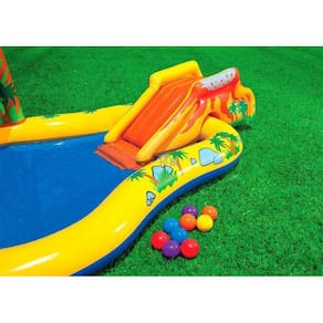 Centro De Diversões Inflável Parque Dos Dinossauros - IntexA Intex acaba de fabricar uma piscina infantil com temática e formato de dinossauro, para crianças e que não superem Fabricada em Pvc e coberta de tinta atóxica, ela é resistente e não coloca em risco a saúde das crianças. O lazer ao ar livre fica muito mais divertido com esta piscininha.As altas temperaturas do verão não serão páreo para a refrescância proporcionada por este produto Caracteristicas:Forte e resistente, esta piscina de dinossauro aguenta até 81 quilos, ou seja, mais de uma ou duas Crianças podem brincar nela. Fabricada em Pvc super resistenteEla possui capacidade para 216 litros de água e têm medidas amplas, de 249 cm x 191 cm x 109 cm.Na boca do dinossauro a criança brinca de atirar as seis bolinhas que a fabricante envia junto com a Piscina. A flor espirra água e provoca um efeito de cachoeira, onde os pequenos se refrescam e acabam com o calor dos dias mais quentes do verão. Há também um escorregador, que torna a brincadeira completa.Ficha técnica- Inclui motor: Não- Idade máxima recomendada: 8- Com tobogã: Sim- Idade mínima recomendada: 2- Acessórios incluídos: 06 BOLINHAS INCLUIDASCE-BR/INNAC - 00265-01ANM300/200