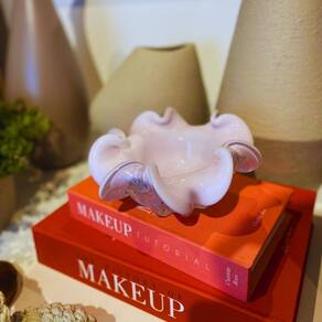 Centro De Mesa De Vidro Murano Veneza 21x21x9,5cm - Jolitex Rosa Leitoso -