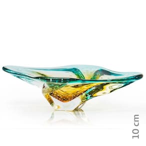 Centro De Mesa Em Cristal Murano Verde E Ambar São Marcos Comprimento:45cm Largura:45cm Altura:10cm Peso:6020g Produzida 100% artesanalmente com a técnica secular e originária da Itália, a qual com muita maestria e criatividade são desenvolvidas e preservadas no Brasil pela Cristais São Marcos desde 1962. As escolhas das peças são versáteis e podem ser usadas para decorar casas e ambientes dos mais variados estilos. A tradição do Cristal Murano e a inovação em detalhes, formas e cores, trazem requinte para a decoração. O colorido do Muranoem especial, tornase um coringa na decoração e produzem um efeito muito bonito em locais com luz natural, não dependendo de nenhum outro elemento para se destacar. As peças em Cristal Murano, são atemporais, aposte nelas como a estrela da decoração ou ainda para harmonizar em combinações com diferentes artigos para compor um ambiente. Junto com as peças em Murano, leve ainda um pouco de história. Uma dica é misturar diferentes Muranos e criar sua coleção de arte particular. O cristal Murano, tornouse objeto de desejo por suas caracteristicas únicas. Sendo assim, com todas essas particularidades, ele é uma ótima escolha para decorar, colecionar e ainda presentear com classe e sofisticação.
