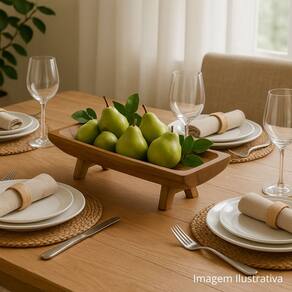 Dimensões Medidas Produto: Altura:12cm Largura:52,5cm Comprimento:16,5cm Contém: 1 Centro de Mesa Cor: Marrom Material: Madeira Peso: 350g