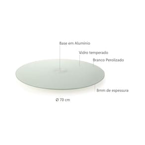 Fabricado com tampo em vidro temperado de alta resistência e base em alumínio reforçado, o produto alia durabilidade, segurança e um visual moderno. O acabamento em branco perolizado confere um toque sofisticado e neutro, combinando facilmente com diferentes estilos de decoração, desde o clássico ao contemporâneo.
