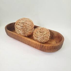 Centro de Mesa Madeira Oval Decorativo 52cm Bandeja Rústica Centro de Mesa Decorativo Oval em Madeira Inigual Decor Adicione um toque de charme rústico e elegância natural ao seu ambiente com o Centro de Mesa Decorativo Oval em Madeira da Inigual Decor. Esta peça versátil é perfeita para criar um ponto focal acolhedor em sua mesa de jantar, aparador ou balcão, realçando a beleza dos seus arranjos ou objetos decorativos. Confeccionado em madeira de alta qualidade com acabamento na cor natural da madeira, este centro de mesa oval apresenta um design clássico e atemporal que se integra harmoniosamente a diversos estilos de decoração. Suas dimensões de aproximadamente 8,5 cm de altura, 52,5 cm de largura e 22,5 cm de profundidade o tornam ideal para acomodar velas, vasos com flores, folhagens ou outras composições que você desejar. Com um peso aproximado de 2370g, ele possui uma estrutura robusta e estável, garantindo durabilidade e uma presença marcante em seu espaço. É a escolha perfeita para quem busca um elemento que evoca aconchego, sofisticação e um toque orgânico na decoração do lar. Por Que Escolher o Centro de Mesa Oval em Madeira Inigual Decor