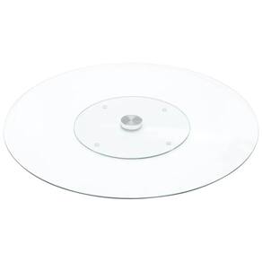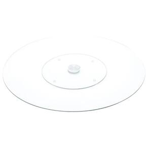 Garantia: 90 dias / Peso: 0,860kg / Cor predominante: transparente / Ref: 7895730025170; Dimensões: 30cm (D) x 2cm (A); Materiais: vidro temperado; Ângulo: 360graus; Conteúdo: 1 centro de mesa giratório;