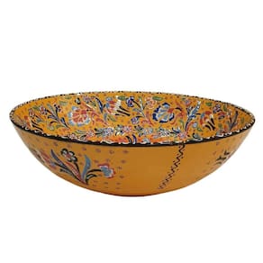 Centro de Mesa Turco Pintado de Cerâmica Amarelo Estampado 30cm Pinturas Diversas Centro de Mesa Turco Pintado de Cerâmica Amarelo 30cm Pinturas Diversas