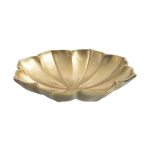 O Centro de Mesa Victoria tem 40 cm e é produzido em metal, com acabamento fosco em dourado. O formato remete às pétalas de uma flor e confere destaque para decoração.