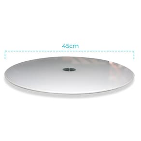 Prato com sistema giratório, design exclusivo com chanfro polido , duplo sistema de rolamentos, com muita resistência, beleza e durabilidade. Acrescenta a mesa um toque de sofisticação e praticidade no café da manhã, almoço, jantar, pizza, frutas e bebidas. Com recipientes quentes, evita a queima de toalhas e mesas. O prato giratório pode ser utilizado também das seguintes formas: Expositor para lojas: perfumes, cristais, e ótimo para confeitar bolos. - Acompanha Batentes de Silicone de apoio. - Recomendamos que sobre espaço livre entre a borda do Tampo de sua mesa e a borda do Prato Giratório centralizado, entre 30 a 45 cm - Comodidade, Praticidade e Beleza aliadas em um único produto