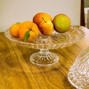 Altura: 10,4 cm Largura: 29,5 cm Profundidade: 29,5 cm Peso: 1,62 Kg Diâmetro da Base: 10,9 cm Material: Vidro Cor: Transparente