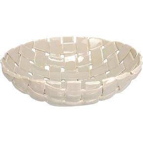 Altura:9,5cm Largura: 33 cm Profundidade: 33 cm Peso: 1,528 Kg Diâmetro da Base: 12 cm Diâmetro do Topo: 32 cm Material: Ceramica Cor: Marfim