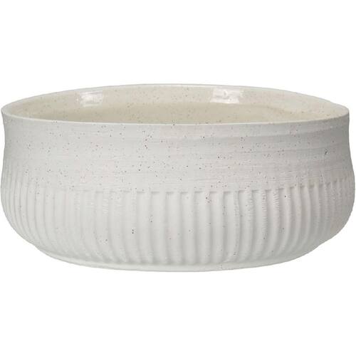 Altura: 11,5 cm Largura: 28,5 cm Profundidade: 28,5 cm Peso: 2,71 Kg Diâmetro da Base: 24,5 cm Diâmetro do Corpo: 28,5 cm Diâmetro do Topo: 28,5 cm Material: Ceramica Cor: MARFIM