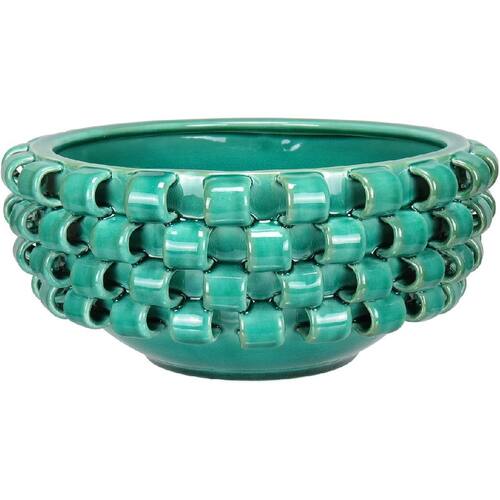 Altura: 12,5 cm Largura: 28 cm Profundidade: 28 cm Peso: 2,53 Kg Diâmetro da Base: 12 cm Diâmetro do Corpo: 28 cm Diâmetro do Topo: 22,5 cm Material: Ceramica Cor: Verde