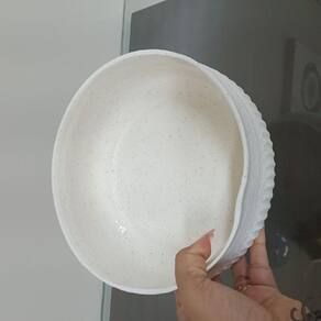 Altura: 8,5 cm Largura: 20,5 cm Profundidade: 20,5 cm Peso: 1,19 Kg Diâmetro da Base: 18,5 cm Diâmetro do Corpo: 20,5 cm Diâmetro do Topo: 20,5 cm Material: Ceramica Cor: MARFIM