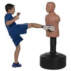 Marca: Century Fabricante: Century Modelo: Bobby Bully (código 10175) Tipo de produto: Saco de pancadas infantil tipo manequim em pé Tamanho: Youth (infantil/juvenil) Esporte indicado: Boxe e artes marciais Cor: Natural (tom de pele) Time/segmento associado: Century Martial Arts Liga (descrição do anúncio): MMA Faixa etária recomendada: A partir de 4 anos Material do tronco/cabeça: Borracha com revestimento tipo vinil/PU Material da base: Plástico de alta resistência Altura ajustável do conjunto: Aproximadamente 127 cm a 140 cm Dimensões do produto (largura x altura do tronco): 57,5 cm x 56 cm Dimensões do produto (comprimento x largura x altura total): 57,5 cm x 57,5 cm x 134 cm Dimensões da embalagem (comprimento x largura x altura): 134,6 cm x 51,3 cm x 46,2 cm Peso do produto (sem base cheia): 11,3 kg Peso aproximado com base cheia: Até cerca de 77 kg com água ou areia, conforme recomendação do fabricante Base: Base redonda para preenchimento com água ou areia Ajuste de altura: Mecanismo de regulagem em múltiplas posições Número de itens: 1 manequim com base Manual do usuário: Manual em inglês Marca: Não Informado