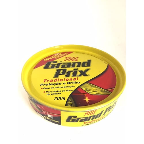 A Cera Grand Prix Tradicional Proteção e Brilho tem exclusiva fórmula, que pode ser aplicada em qualquer tipo de pintura, inclusive de carros novos com menos de 5 anos, sem danificá-las. A Cera protege e dá brilho de forma imbatível, podendo ser Utilizado sob o sol ou à sombra. Protege contra as ações nocivas do calor, dos raios solares, da chuva e da maresia, deixando um brilho intenso e duradouro, removendo também as manchas e as partículas. Ótimos resultados também em lanchas de fiberglass e trailers - Proteção e Brilho - Cera de última geração - Para todos os tipos de pintura - 200 g - Fragrância Agradável Dicas de uso: - O carro deverá estar limpo e seco - Aplicar a Cera Grand Prix em pouca quantidade, com movimentos circulares, usando um pano ou esponja limpa levemente umedecida. - Encerrar pequenas áreas de cada vez - Deixar secar por alguns minutos, e dar o brilho com outro pano limpo e seco, virando-o frequentemente, o brilho surgirá novamente