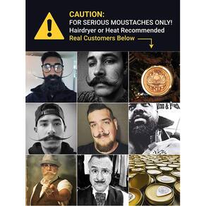 CUIDADO PARA BIGODES GRAVES SOMENTE Secador de cabelo ou calor com um pouco de prática é recomendadoEXTRA STRONG HOLD Mantém os bigodes indisciplinados no lugar por 8 horas mais até mesmo em tempo quenteLastS Uma cera de bigode de metal de longa duração de 1oz pode durar até 4 meses de uso diário. não perfumado FABRICADO NOS EUA Todos os ingredientes is cruelty free competition grau de dor de bigode ceraDEATH GRIP BIGODE GARANTIA DE CERA SE você não estiver satisfeito por qualquer razão vamos reembolsar o seu dinheiro