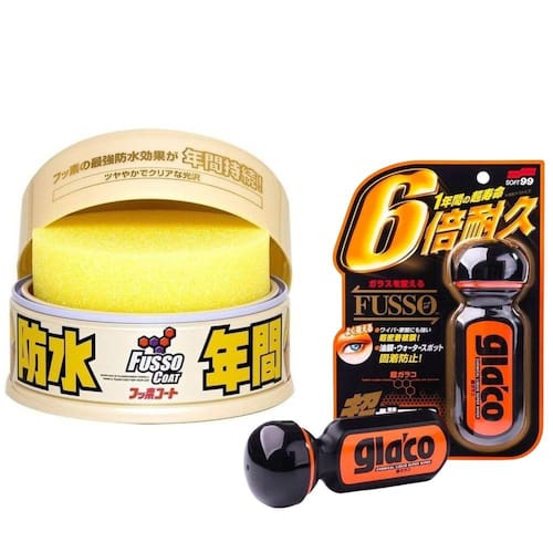 Cera Fusso Light Proteção + Cristalizador de Vidros GlacoProteja e aprimore seu veículo com o conjunto Cera Fusso Light Proteção e Cristalizador de Vidros Glaco. A cera Fusso Light oferece uma camada de proteção duradoura e brilho à sua pintura, enquanto o cristalizador de vidros Glaco mantém sua visão nítida e repelente à água. Mantenha seu carro com uma aparência impecável e vidros sempre limpos com este conjunto de cuidados automotivosEspecificações Técnicas:Cera Fusso Light • Tipo: Pasta Dura• Nível de Brilho: 9• Tipo de Brilho: Espelhado• Nível de Repelência: 10• Nível de Proteção: 10• Durabilidade: Até 12 Meses• Rendimento: Até 40 Carros• Conteúdo: 200gEspecificações Técnicas:Cristalizador de Vidros Glaco• Peso: 70ml• Textura: Líquida• Nível de Repelência: 8• Acompanha Aplicador de Feltro• Rendimento de até 17 Para-Brisas• Durabilidade de até 12 MesesAplicação:1 - Lave o para-brisas e seque bem. Se o vidro possuir outro produto aplicado é necessário a remoção. (Dica: Para remoção utilize o Glaco Refresh);2 - Agite bem o frasco e retire a tampa;3 - Aplique Ultra Glaco Soft99 pressionando o aplicador sobre a superfície espalhando em toda a extensão do vidro, sem deixar falhas;4 - Deixa secar por 15 minutos, até que uma camada esbranquiçada surja;5 - Passe uma toalha seca, removendo o excesso do produto;6 - Não utilize a palheta por 3 horas.Importante: UTILIZAR SOMENTE DO LADO EXTERNO DO PARA-BRISASCuidados:1 - Não aplicar sob o sol forte ou o vidro quente;2 - Utilize somente o Glaco Washer ou água pura no esguicho;3 - Caso derrame o líquido acidentalmente na pintura, limpe com pano úmido;4 - Recomenda-se trocar as palhetas velhas e ressecadas, elas podem danificar a membrana do Ultra Glaco.Conteúdo da Embalagem:• 01 Cera Fusso Coat Light Soft99 12 Meses Para Carros Claros• 01 Esponja Aplicador• 01 Cristalizador de Vidros Ultra Glaco Soft99 70ml• 01 Feltro AplicadorImportante:• Garantia de 273 dias.• Valor Kit.