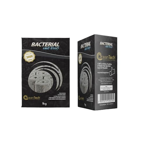 Cerâmica nano rings bacterial 1k - ocean tech é produzido a partir de micro cerâmicas tridimensionais tendo assim uma área de superfície para a colonização de bactérias de até 10 vezes maior do que outras mídias filtrantes. Bacterial nano rings oceantech é altamente permeável, permitindo uma distribuição de água uniforme em todo o bloco, cada micro tem contato com o fluxo d'água em todo seu entorno aumentando significativamente sua área de colonização. Cada bloco de nano block oceantech tem uma área de 1. 080 m² e trata até 1400 litros de água. Nano block oceantech é ideal para uso em filtros hang on, canister, filtro de lago, sumps e em sistema dry wet. Para acelerar a colonização e resultados mais rápidos recomendamos o uso em conjunto com os os produtos biológicos da oceantech overnite e oceanblend.