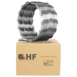 A Concertina Simples é um produto formado por espiras com lâminas cortantes e tem como função proteger o imóvel de invasões. Para evitar acidentes, o produto deve ser mantido longe do alcance de crianças e animais domésticos. A instalação deve ser feita por um profissional capacitado e o muro deve ter no mínimo 2,10 metros de altura. O produto é fabricado em aço galvanizado com tratamento galvalume, o que deixa a concertina com durabilidade superior. A fabricação é feita com matéria-prima nacional de extrema qualidade e, por isso, possui 5 anos de garantia.