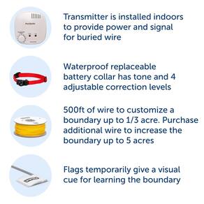 - Segurança para animais de estimação: experimente a alegria de fornecer uma área de jogo segura para seus animais de estimação com a cerca básica para animais de estimação PetSafe Basic, uma cerca elétrica confiável para cães. Esta cerca elétrica para cães é projetada para manter seus animais de estimação dentro de uma área designada, até 5 acres, permitindo que eles vagem livremente enquanto você desfruta de paz de espírito.