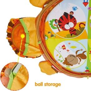 Incluso no Pacote: 1 cercadinho, 12 bolinhas coloridas, brinquedos suspensos, e uma bolsa de armazenamento prática.
