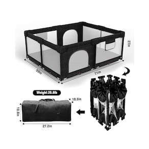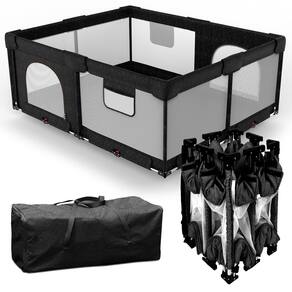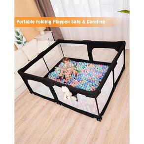 Cercadinho dobrável para bebês, centro de atividades infantis interno e externo com base antiderrapante, cercado de segurança resistente (preto, 150 x 180 cm)
