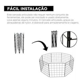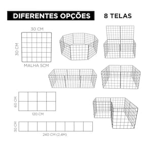 ITENS INCLUSOS: - 8 telas 30x30cm e abraçadeiras de nylon para montagem de um cercado móvel