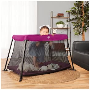 MALHA RESPIRÁVEL: As laterais do Playard são feitas de tecido de malha macio e arejado que permite que seu bebê respire facilmente. O tecido transparente ajuda você a ficar de olho no seu bebê e permite que o seu LO fique de olho.