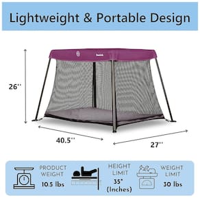 PRONTO PARA VIAGEM: O Travel Light é montado e dobrado em minutos, tornando o o companheiro de viagem ideal para bebês e crianças pequenas. É perfeito para férias. Ele se dobra e pode ser zenado em sua bolsa de transporte durável.