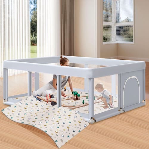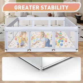Hiaksedt Cercadinho grande para bebês de 182 cm × 127 cm com tapete para bebês e crianças, parques de jogos para ambientes internos e externos com portões de zíper, malha respirável - Espaço suficiente para brincar: nossa caneta de brincar de 188 x 127 x 68 cm pode acomodar 4 bebês e um adulto para brincar ao mesmo tempo, o pequeno pátio é fácil de mover e pode ser colocado em qualquer lugar. - Anticolisão segura: nosso cercadinho é feito de tecido Oxford 320D criptografado não tóxico, que passou no teste CPSIA dos EUA. Os conectores são cobertos com espuma espessa, o que aumenta o amortecimento e evita efetivamente lesões causadas por colisões. Além disso, também vem com um tapete de cercadinho, nenhuma compra adicional é necessária. - Seguro para animais de estimação: nosso cercadinho infantil será um local seguro para qualquer bebê e família de animais de estimação, 10 ventosas antiderrapantes são projetadas para estabilidade extra e podem grudar firmemente no chão, para que seu bebê não derrube sobre a caneta e cause perigo. - Visão total de 360°: o design de malha respirável oferece um ângulo de visão de 360°, liberando as mãos da mãe a qualquer momento, a mãe pode fazer suas próprias coisas a qualquer momento, o design de zíper externo evita que o bebê fique sem a caneta de brincar do bebê. - Fácil de montar: nosso cercadinho para bebês é conectado por tubo de liga de aço e junta de plástico ABS, que é fácil de desmontar e montar, a mãe pode instalá-lo facilmente em 10 minutos sem qualquer ajuda. Nosso cercadinho é fácil de limpar, basta limpá-lo com um pano úmido. Estojo de transporte para fácil armazenamento e portabilidade.
