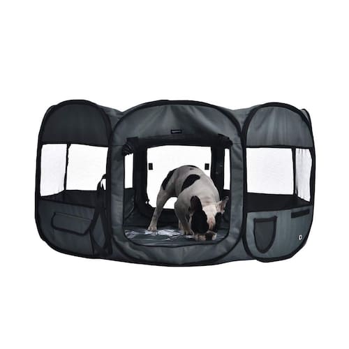 - Cercadinho macio para animais de estimação de 45 polegadas e 8 lados para viagens, uso interno ou externo