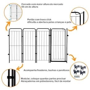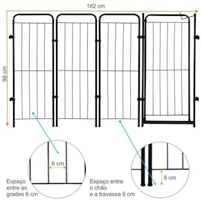 Cercado Cachorro Caes Grande Portao + 3 Modulos 162x98cm Cor: Preto Bem-vindo à UTILITY Somos uma loja online especializada em utilidades PET, utilidades Domésticas e produtos Pegue e Faça você mesmo Descrição do produto:- Cercado Dobrável Grande com Portão Conteúdo da Oferta-01 Cercado Dobrável Grande com 03 módulos + portão Benefícios:- É fixado com parafusos que acompanham o produto- Leve e fácil de montar- Fácil de guardar por ser dobrável- Ótimo custo benefício- Restringe espaços para pets de até grande porte- Alta durabilidade pintura antiferrugem Especificações do Produto:- Cor: Branco ou Preto- Material: Aço Carbono Aberto:- Altura: 98 cm- Largura máxima: 162 cm- Profundidade: 1,6 cm Fechado:- Altura: 98 cm- Largura: 36 cm- Profundidade: 8 cm Indicado para:- Casas- Apartamentos- Área de lazer- Pets de pequeno, médio e grande porte. Garantia:- 6 meses por defeito de fabricação. Assim que recebemos seu pedido, fazemos a postagem em até 24 horas. Aguardamos seu retorno Equipe Utility