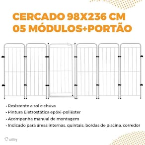 Cercado Cachorro Caes Grande Portao + 5 Modulos 236x98cm Cor: Branco Bem-vindo à UTILITY