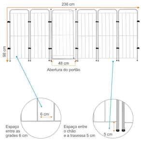 Benefícios: - É fixado com parafusos que acompanham o produto - Leve e fácil de montar - Fácil de guardar por ser dobrável - Ótimo custo benefício - Restringe espaços para pets de até grande porte - Alta durabilidade pintura antiferrugem