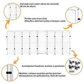 Benefícios: - É fixado com parafusos que acompanham o produto - Leve e fácil de montar - Fácil de guardar por ser dobrável - Ótimo custo benefício - Restringe espaços para pets de até grande porte - Alta durabilidade pintura antiferrugem