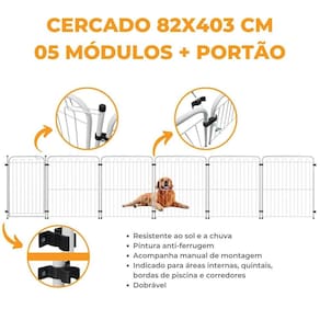 Cercado Cachorro Pet Cercadinho 5 Modulos+Portao 403x82cm Cor: Branco Bem-vindo à UTILITY
