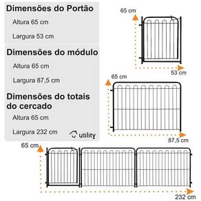 Conteúdo da Oferta: - 01 Portão Modular Cor Preto - 02 Módulos na Cor Preto - 06 Abraçadeiras para unir as partes do cercado - 04 Abraçadeiras para fixação