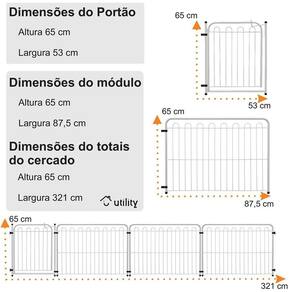 Conteúdo da Oferta: - 01 Portão Modular Cor Branco - 03 Módulos na Cor Branco - 06 Abraçadeiras para unir as partes do cercado - 04 Abraçadeiras para fixação