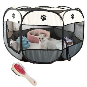 Cercado Extra Grande Cão Gato Pet Portátil Cinza + Escova Cercadinho Portátil para Animais de Estimação - Espaço Seguro e Confortável em Qualquer Lugar