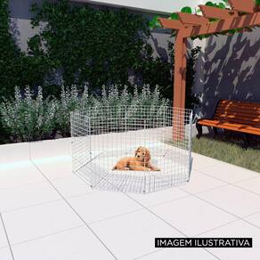 CERCADO CACHORRO ARTICULADO MÓVEL PET 8 TELAS ARAMADAS 60x80 BRANCO * 8 TELAS, VÁRIAS POSSIBILIDADESEste tipo de cercado é montado com telas aramadas e abraçadeiras de nylon, o que o torna um produto versátil para ser montado conforme a sua necessidade, além da possibilidade de simplesmente guardá-lo montado de uma forma que ocupe menos espaço.Serve para animais de pequeno e médio porte ou filhotes como de cachorro e gato. Também é apropriado para coelho, porquinho da índia entre outros pets, com a devida atenção se atravessam ou não a malha da grade.Existe a possibilidade de usar as telas como cerca e portão com as devidas precauções e adaptações por conta do cliente.RECOMENDAÇÕES DE USO:- Filhotes de cachorros e gatos;- Cachorros de pequeno e médio porte;- Porquinhos da Índia, mini coelhos e coelhos.* Recomendamos que sempre verifique antes da escolha se o seu PET não atravessa a malha das telas (buracos) e/ou se ele não salta pelo cercado.DIMENSÕES APROXIMADAS/ POSSIBILIDADES: - Cercado Quadrado 1ª Opção: 120x120X80cm - Cercado Quadrado 2ª Opção: 160x160X60cm - Cercado Retangular 1ª Opção: 180x60x80cm - Cercado Retangular 2ª Opção: 240x80x60cm - Cerca Linha Reta 1ª Opção: 80x480cm (4,8 metros) - Cerca Linha Reta 2ª Opção: 60x640cm (6,4 metros)CARACTERÍSTICAS: - Cor: Branco - Acabamento em pintura eletrostática - Material Tela: Aço - Material Abraçadeira: Nylon - Telas: 60x80cm - Malha: 5cmRECOMENDAÇÃO - Clips auto adesivos servem para ajudar na imobilização do cercado e dispensam furação; - Parafuso gancho ajuda a imobilizar de forma mais firme, pois precisam furar a parede ou chão para colocá-los; - Conectivos ajudam na montagem de um cercado fixo (conectivos são removíveis quando precisar)* Possuímos os mais variados tipos de cercados em modelos e tamanhosITENS INCLUSOS:- 8 telas 60x80cm e abraçadeiras de nylon para montagem de um cercado móvel* Procurou um modelo e não encontrou? Tem algum projeto específico? Não sabe como aumentar seu cercado? Deixe-nos saber e vamos te ajudar!OBSERVAÇÕES: - Garantia de 3 meses contra defeitos de fabricação - O produto vai desmontado para ser montado no local - Imagens ilustrativas e com sugestões de montagem - Não nos responsabilizamos pelo uso inadequado do produtoNão deixe de conhecer nossos outros produtos! Marca: IGUANNA