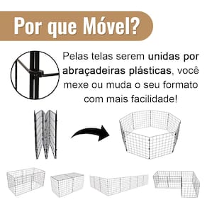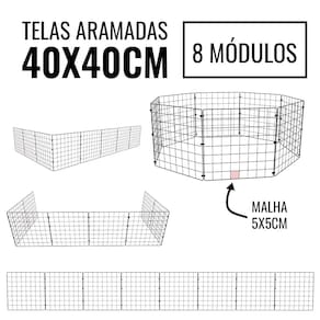 ITENS INCLUSOS: - 8 telas 40x40cm e abraçadeiras de nylon para montagem de um cercado móvel