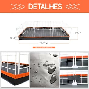 CERCADO ARAMADO PORQUINHO DA ÍNDIA 60X120 CM BRANCO COM BANDEJA HIGIÊNICA IMPERMEÁVELPara você que ama o seu Pet e deseja proporcionar o melhor lugar para ele, os cercados aramados são a sua melhor opção. Eles são compostos de telas aramadas de aço e conectivos de plástico, que é a combinação ideal para uma melhor organização, durabilidade e segurança para o seu animalzinho, além de se adaptar muito bem ao ambiente.É importante que o Pet tenha espaço suficiente para ficar confortável no seu dia a dia, por isso a escolha do cercado deve ser feita com cuidado.Nesse modelo, o cercadinho pet acompanha um tapete higiênico para facilitar a limpeza do espaço. Além desse benefício, a bandeja para cercado oferece outras vantagens como a facilidade para guardar e manusear, seu encaixe perfeito e o fato de ser impermeável, não absorvendo líquidos.RECOMENDAÇÕES DE USO:- Tamanho ideal para até 3 Porquinhos da ÍndiaDIMENSÕES APROXIMADAS: - Largura: 60cm - Comprimento: 120cm - Altura: 30cmCARACTERÍSTICAS: - Cor: Branco - Material: Aço - Telas: 30x30cm e 30x40cm - Malha: 5cm - Modelo: Simples - Forração: Tapete Higiênico - Fundo com Telas: Não* Recomendamos que sempre verifique antes da escolha se o seu PET não atravessa a malha das telas (buracos) e/ou se ele não salta pelo cercado.* Possuímos os mais variados tipos de cercados em modelos e tamanhosITENS INCLUSOS:- Kit de telas e conectivos para montagem de um cercado aramado 60x120x30cm- 01 Tapete Bandeja Higiênico * Procurou um modelo e não encontrou? Tem algum projeto específico? Não sabe como aumentar seu cercado? Deixe-nos saber e vamos te ajudar!OBSERVAÇÕES:- O produto vai desmontado para ser montado no local e igual a imagem do anúncio;- Recomendamos para porquinhos da índia e coelhos, cercados com forração (Soft/Lona/Polionda/Tapete Higiênico);- Para colocação dos conectivos é preciso fazer um pouco de pressão, por isso sugerimos o uso de um martelinho de borracha (não acompanha o produto). - Imagens ilustrativas - Não nos responsabilizamos pelo uso inadequado do produtoNão deixe de conhecer nossos outros produtos! Marca: Iguanna